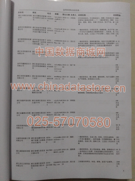 金華外貿企業黃頁包括:外貿企業名稱、地址、電話、傳真、郵箱、經營范圍、注冊資金等信息。