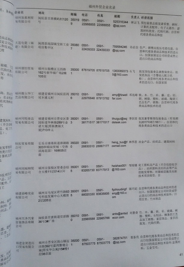 福州外貿(mào)企業(yè)名錄福州進出口企業(yè)名錄,福州進口企業(yè)名錄,福州出口企業(yè)名錄