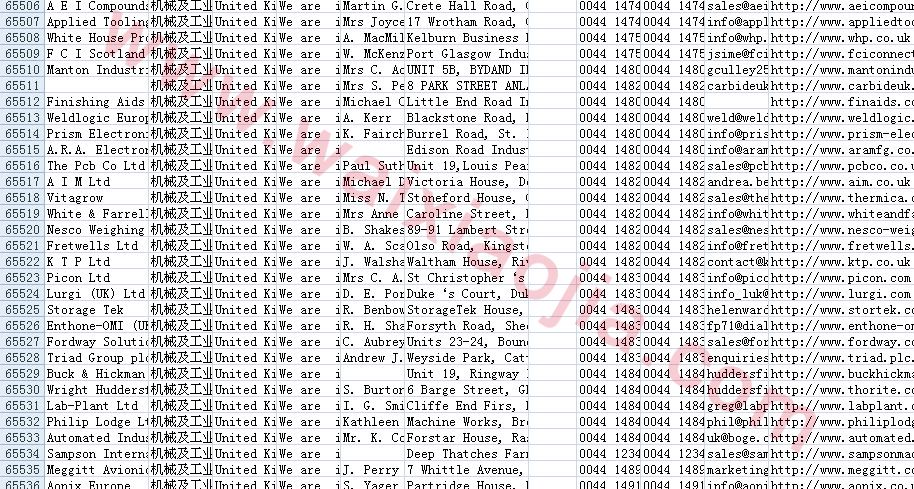 機械及工業(yè)制品采購商名單數(shù)據(jù)為Excel格式,信息可任意修改、復(fù)制、打印、導(dǎo)出及導(dǎo)入到傳真、郵件群發(fā)等軟件中,無任何限制。