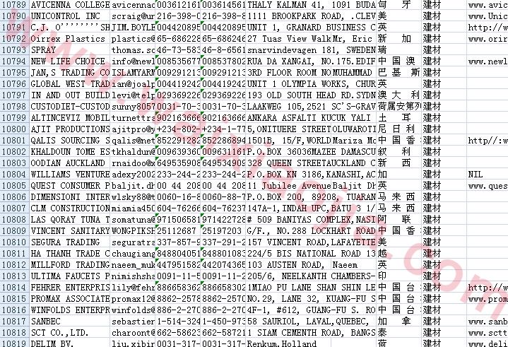 建材行業采購商名單數據為Excel格式,信息可任意修改、復制、打印、導出及導入到傳真、郵件群發等軟件中,無任何限制。