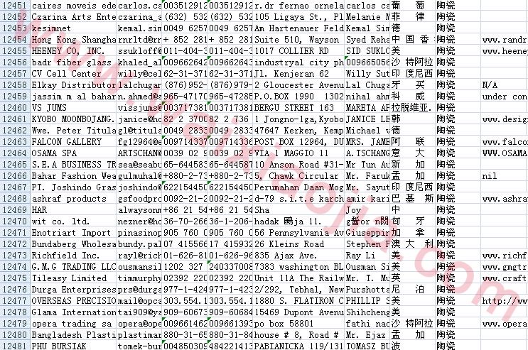陶瓷采購商名單數(shù)據(jù)為Excel格式,信息可任意修改、復制、打印、導出及導入到傳真、郵件群發(fā)等軟件中,無任何限制。