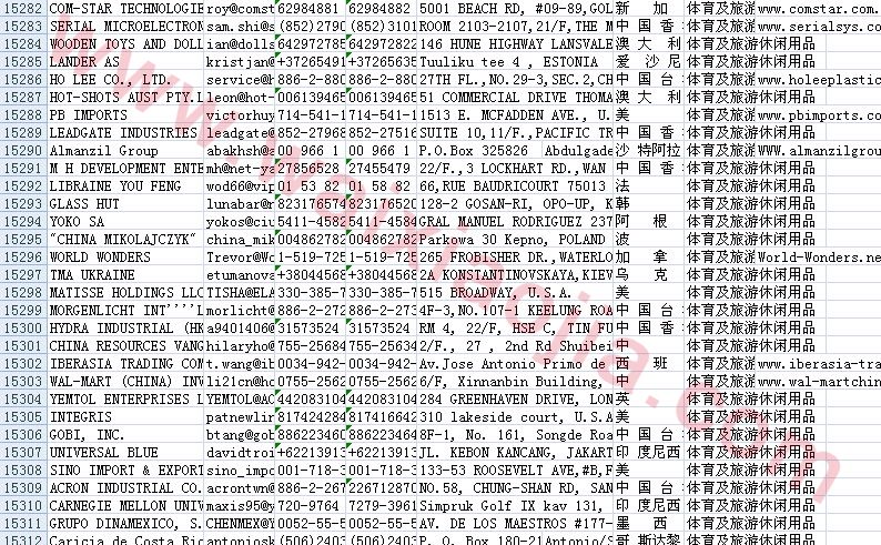 體育休閑用品采購商名單數(shù)據(jù)為Excel格式,信息可任意修改、復制、打印、導出及導入到傳真、郵件群發(fā)等軟件中,無任何限制。