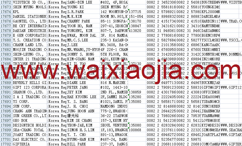 韓國(guó)采購(gòu)商名單數(shù)據(jù)為Excel格式,信息可任意修改、復(fù)制、打印、導(dǎo)出及導(dǎo)入到傳真、郵件群發(fā)等軟件中,無(wú)任何限制。